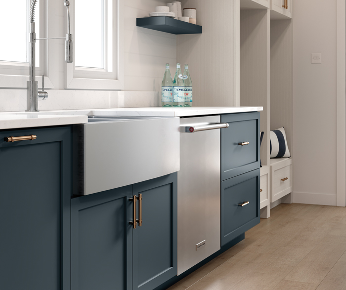 A versatile color, the blue family offers a wealth of cabinet coloring options.